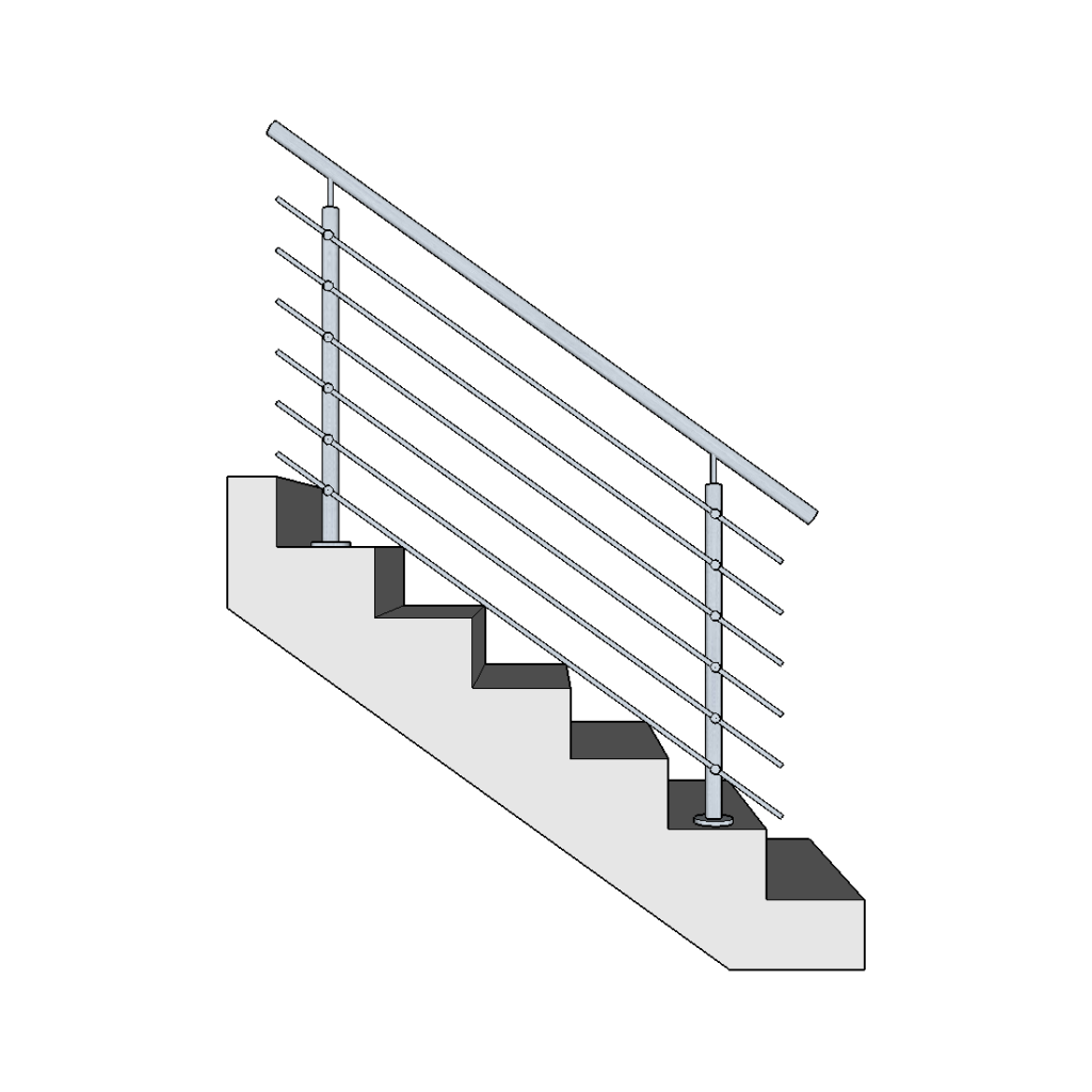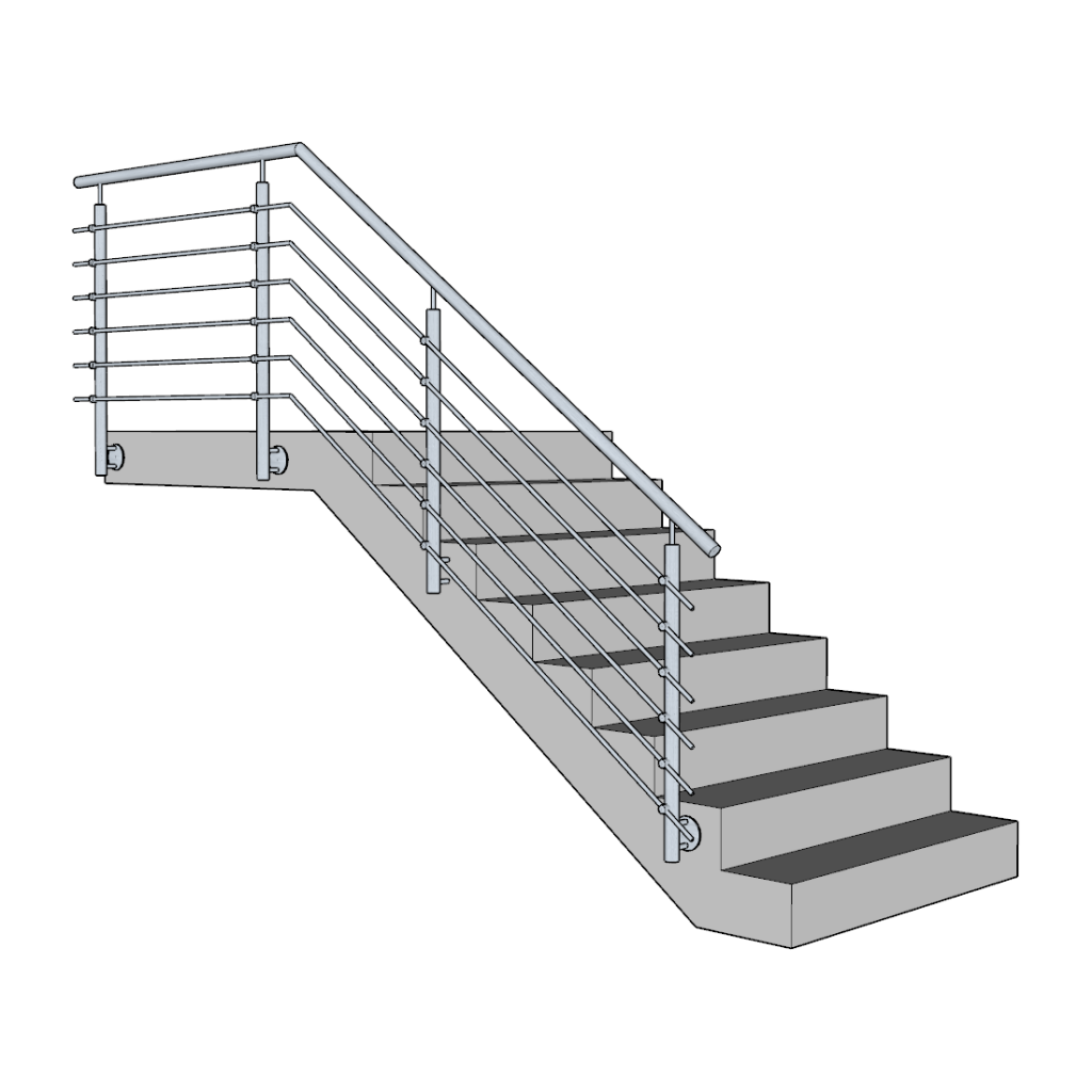 Einzelteile sind max. 3m lang. Handläufe werden mit im Rohr liegenden Fittingen verbunden.